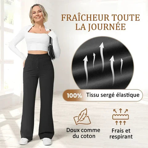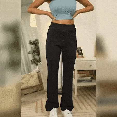 Elevate your everyday style with these high-waisted stretch trousers, designed to offer both functionality and elegance. The flexible fabric moves with you, ensuring all-day comfort and freedom of movement.